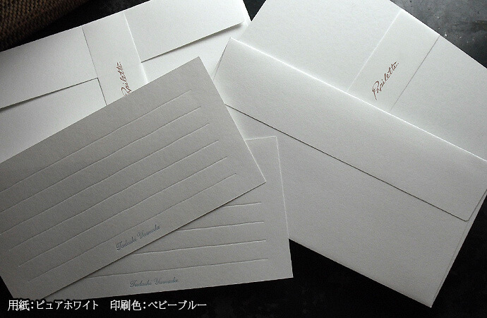 カードにお名前や肩書など(2項目まで)一行でお入れします。