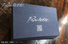 第一印象は、落ち着いたネイビーが映えて、お手に取って頂くと、燦然と無数のラメが輝くラメグリッター名刺は、建築事務所、ウエブビジネス、ネイリストの方々にお選びいただいています。ショップカードとしては、感性豊かなヘアサロンさまやジュエリーショップ、ハイセンスなネイルサロンさま、アクセサリー販売店等のご採用を頂いております。